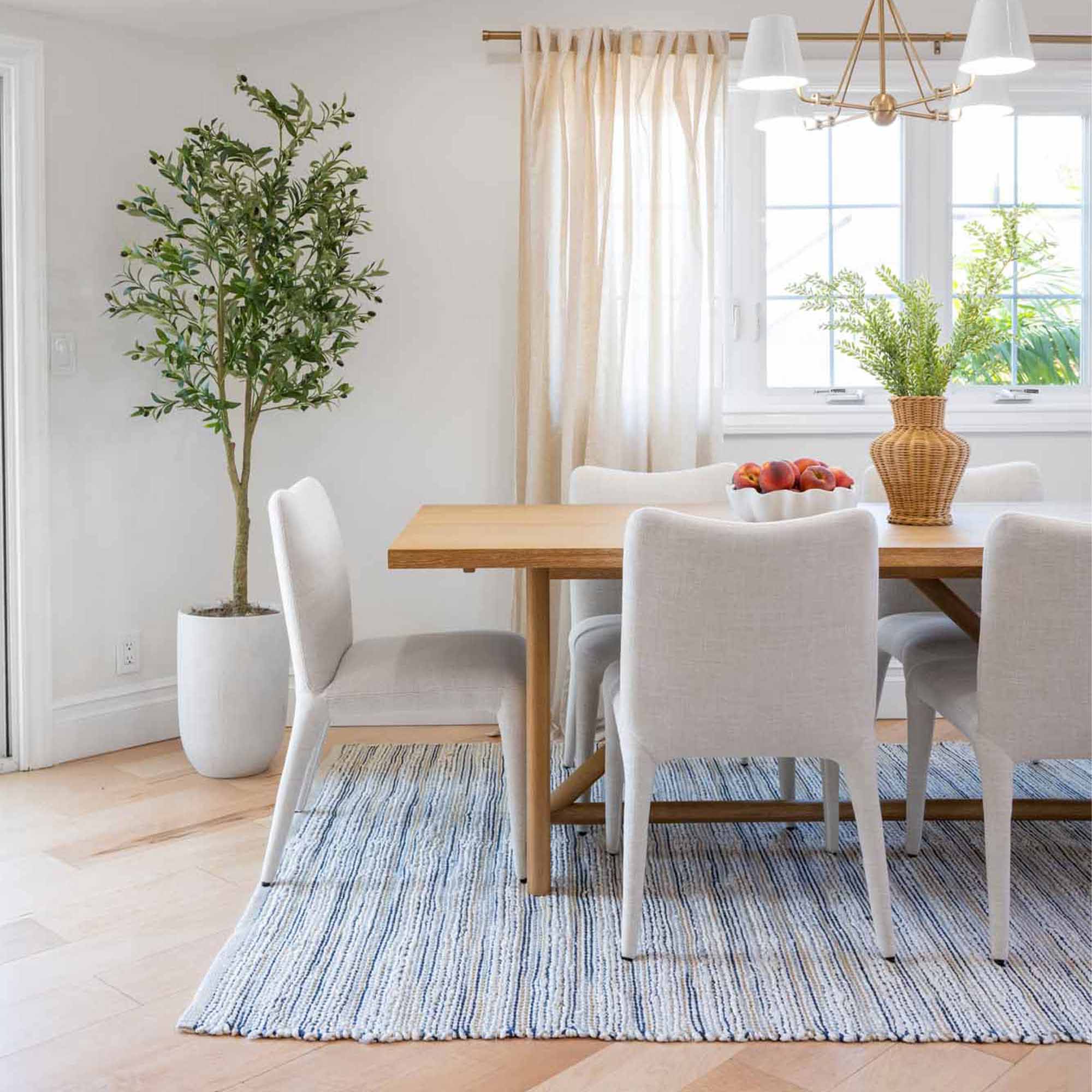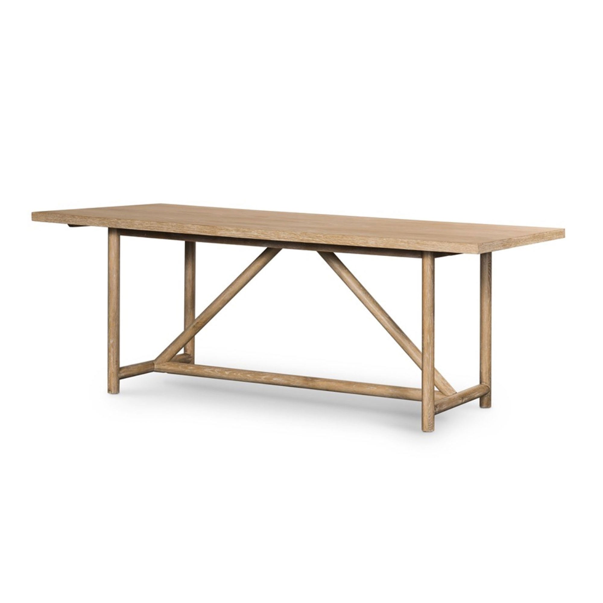This modern rustic take on the classic trestle table brings a bit of architectural interest to any dining room. The whitewashed oak finish adds a vintage feel to this simply styled table that’s perfect for hosting dinners with family and friends.